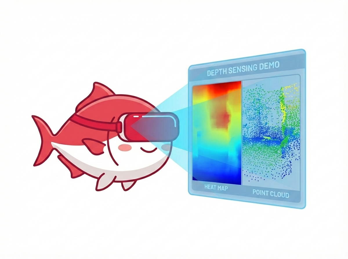 XRDepthInformationから深度マップを取得し、点群/ヒートマップとして可視化するデモ。