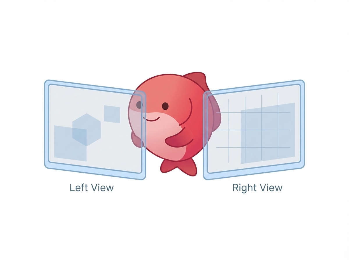 XRView(左/右)のビュー行列とビューポートを使ったステレオ描画パス。