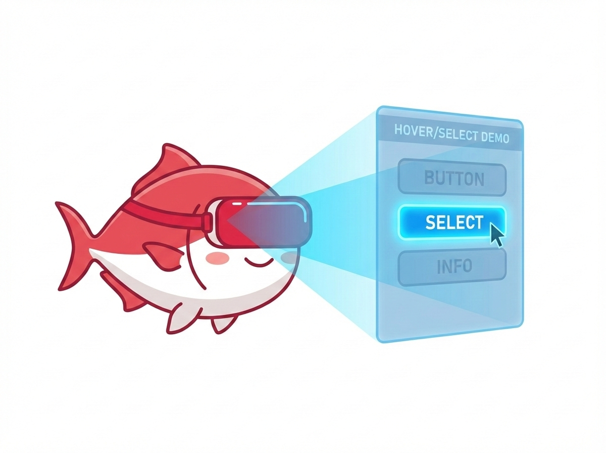コントローラー由来のレイを3Dシーンに飛ばし、オブジェクトとの交差をハイライトする選択デモ。